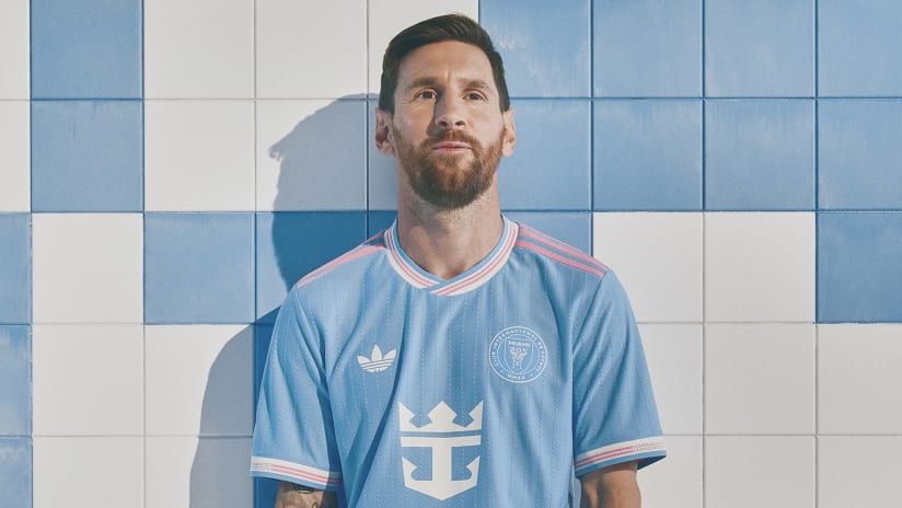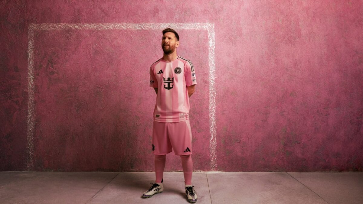 The pink-on-pink engineered stripe design of the 2025 home kit is inspired by Lionel Messi’s legendary jersey aesthetics with Argentina and FC Barcelona .