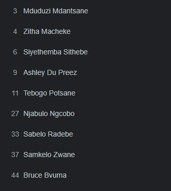 - midfielders: Samkelo Zwane and Mduduzi Shabalala.