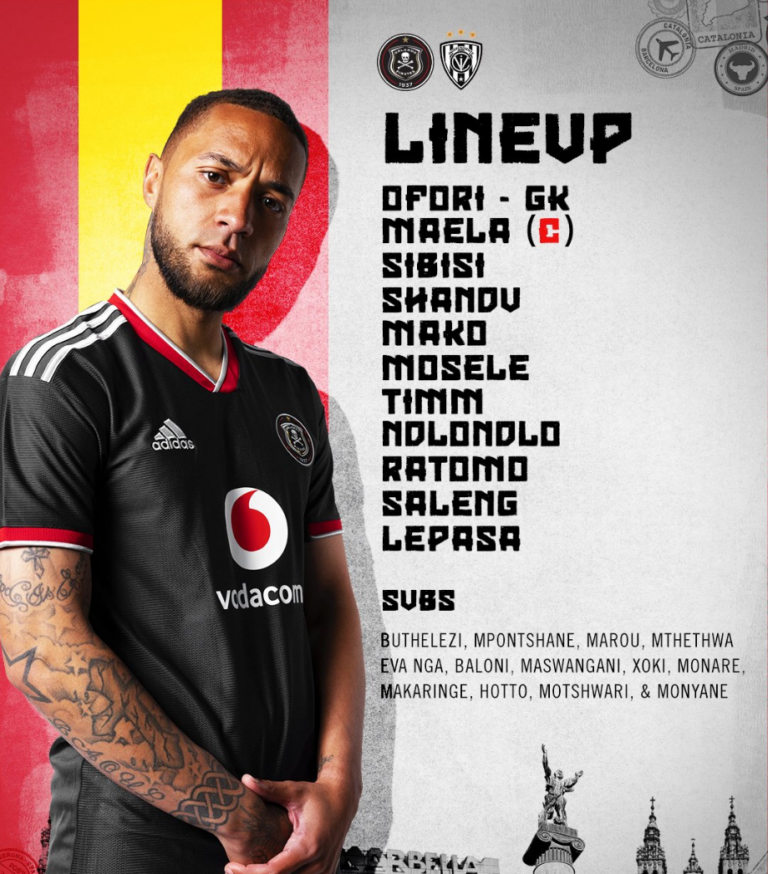 Starting lineup for Orlando Pirates vs Independiente Del Valle